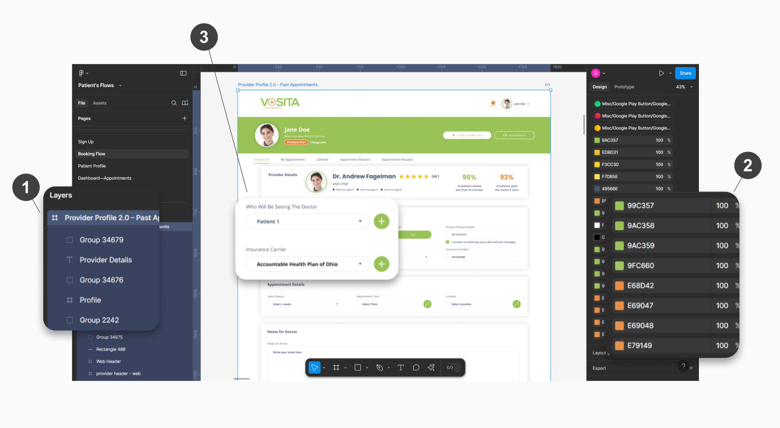 Vosita, a healthcare platform connecting patients with providers, launched in 2020 with a basic, feature-limited product. By 2022, the platform struggled to compete with established players like Zocdoc due to inconsistent design, disorganized assets, and a lack of cohesive branding. I joined the team to lead the redesign effort, known internally as "Vosita 2.0," with the goal of creating a scalable, user-friendly, and visually appealing platform.