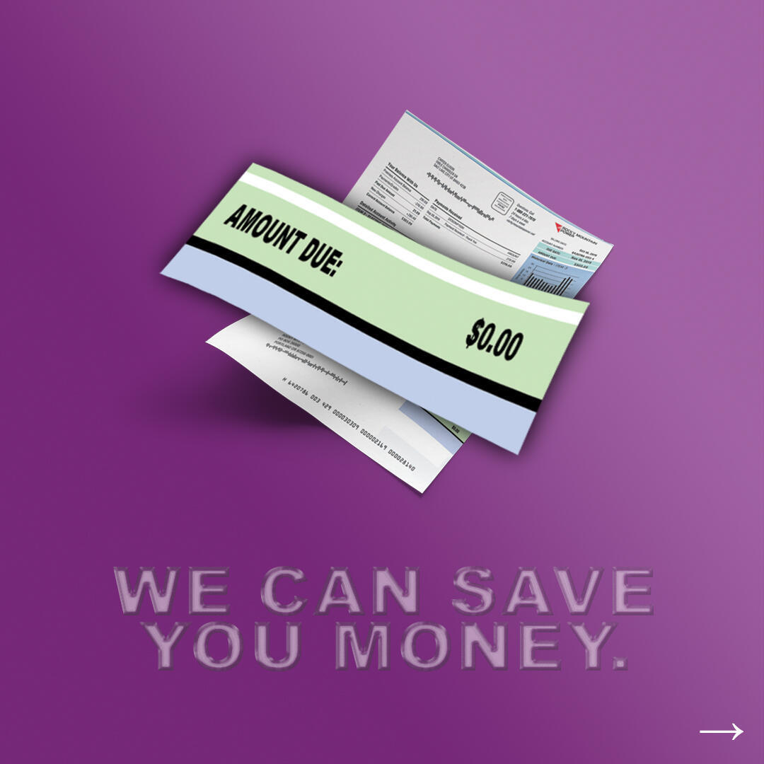 I wanted the first image to be simple and make a statement. Working with the established brand guidelines, I went with a purple background, glass text, and the bill with the amount due highlighted.